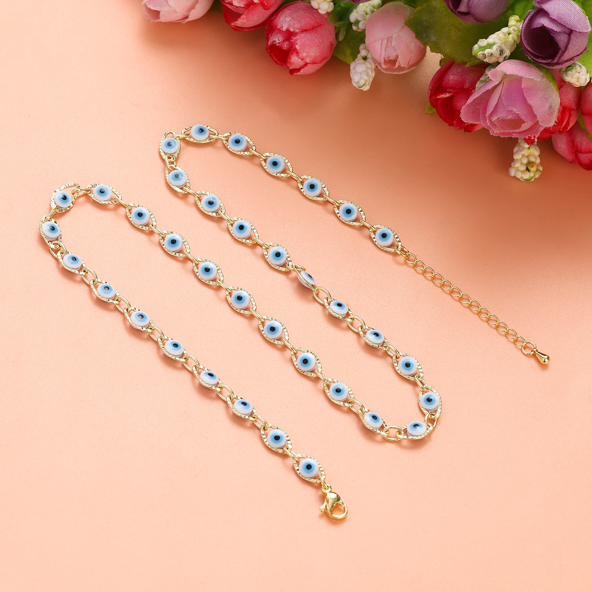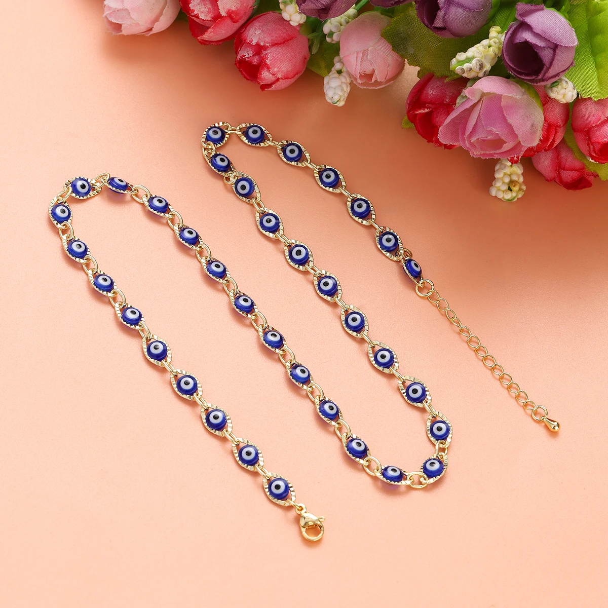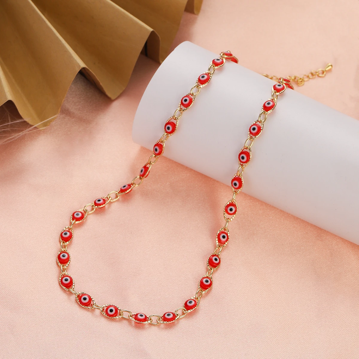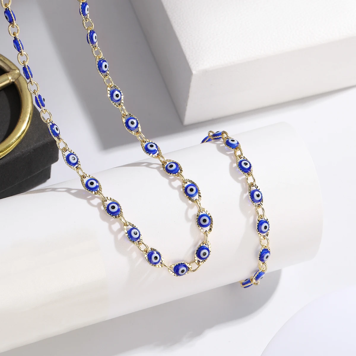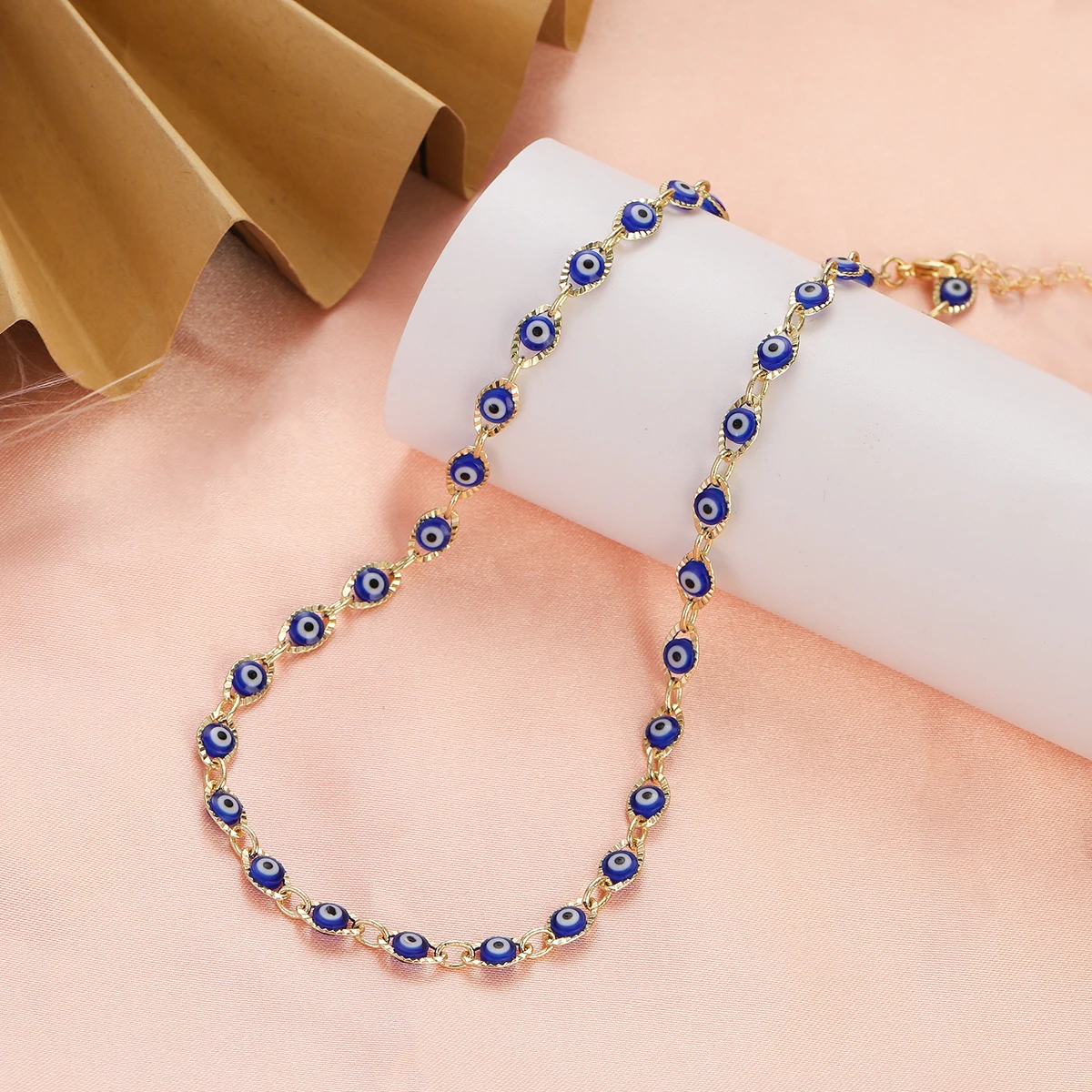 2023 Women's Blue Turkish Evil Eyes Necklace for Women Fashion Gold Color Stainless Steel Necklaces Enamel Bead Jewelry Gift